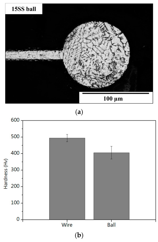 The 15SS-E (a) microstructure of FAB; (b) micro-hardness of FAB and wire.
