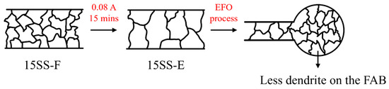 - Cold-drawn 304L stainless steel fine wires develop a dendritic crystal structure after the EFO process. In contrast, electrified annealing reduces solidification segregation in the ball microstructure, minimizes the heat-affected zone, and decreases the number of dendritic structures, enhancing their suitability for wire bonding applications.