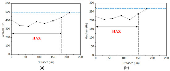 Length of HAZ (a) 15SS-F and (b) 15SS-E.