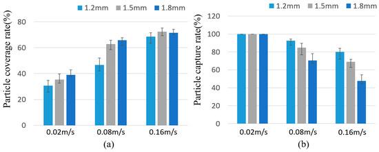 (a) Particle coverage rate and (b) particle capture rate when hc = 1.2, 1.5, and 1.8 mm.