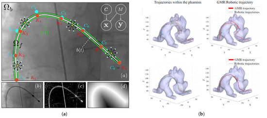 - Chang, P.L.; Rolls, A.; De Praetere, H.; Vander Poorten, E.; Riga, C.V.; Bicknell, C.D.; Stoyanov, D. Robust catheter and guidewire tracking using b-spline tube model and pixel-wise posteriors. IEEE Robot. Autom. Lett. 2016, 1, 303–308. [Google Scholar] [CrossRef]