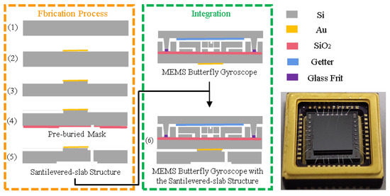 (6) Bond and integrate the cantilever plate structure with the MEMS butterfly gyroscope.