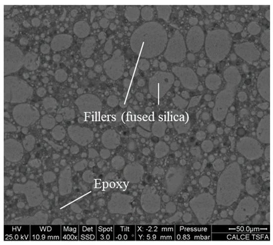 EMCs are composite materials containing very high contents of silica filler (80 to 90% wt./wt.). A scanning electron microscope (SEM) image of a typical EMC is shown in Figure 1. EMCs undergo a significant change (≈one to two orders of magnitude) in modulus over the thermal excursion encountered in the manufacturing processes of semiconductor packages. This large change in modulus poses technical challenges against the set-and-forget style of operation. In fact, blind operation can produce significant errors in viscoelastic property measurements. Although the theory behind DMA is solid, its practice should be reviewed for advanced EMCs, and this is the motivation of this paper.