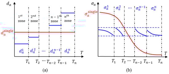 The corresponding temperatures are defined as zones, e.g., the zone covers a temperature range from to . Then, the oscillation amplitude for each zone is selected to contain the variations in the cyclic stress amplitude of each zone in a small range.