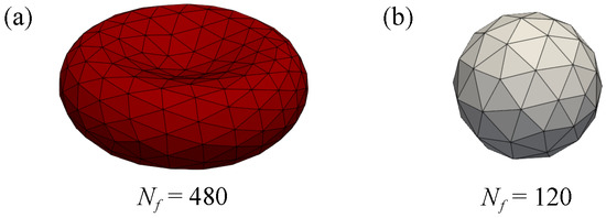 - Krüger, T.; Varnik, F.; Raabe, D. Efficient and accurate simulations of deformable particles immersed in a fluid using a combined immersed boundary lattice Boltzmann finite element method. Comput. Math. Appl. 2011, 61, 3485–3505. [Google Scholar] [CrossRef]