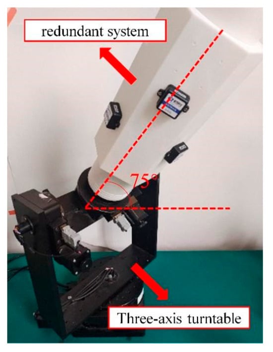The MEMS sensor array was installed on a triaxial rotary table. Similar to the simulation, the matrices E1 and E2 were obtained through a combination of experimental measurements and calculations.