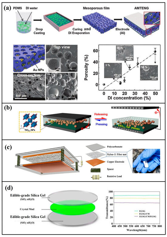 39]. The relative permittivity of triboactive substances directly governs the operational efficacy of TENG systems. Incorporation of high-permittivity nanofillers into these substances provides an effective pathway for permittivity augmentation.