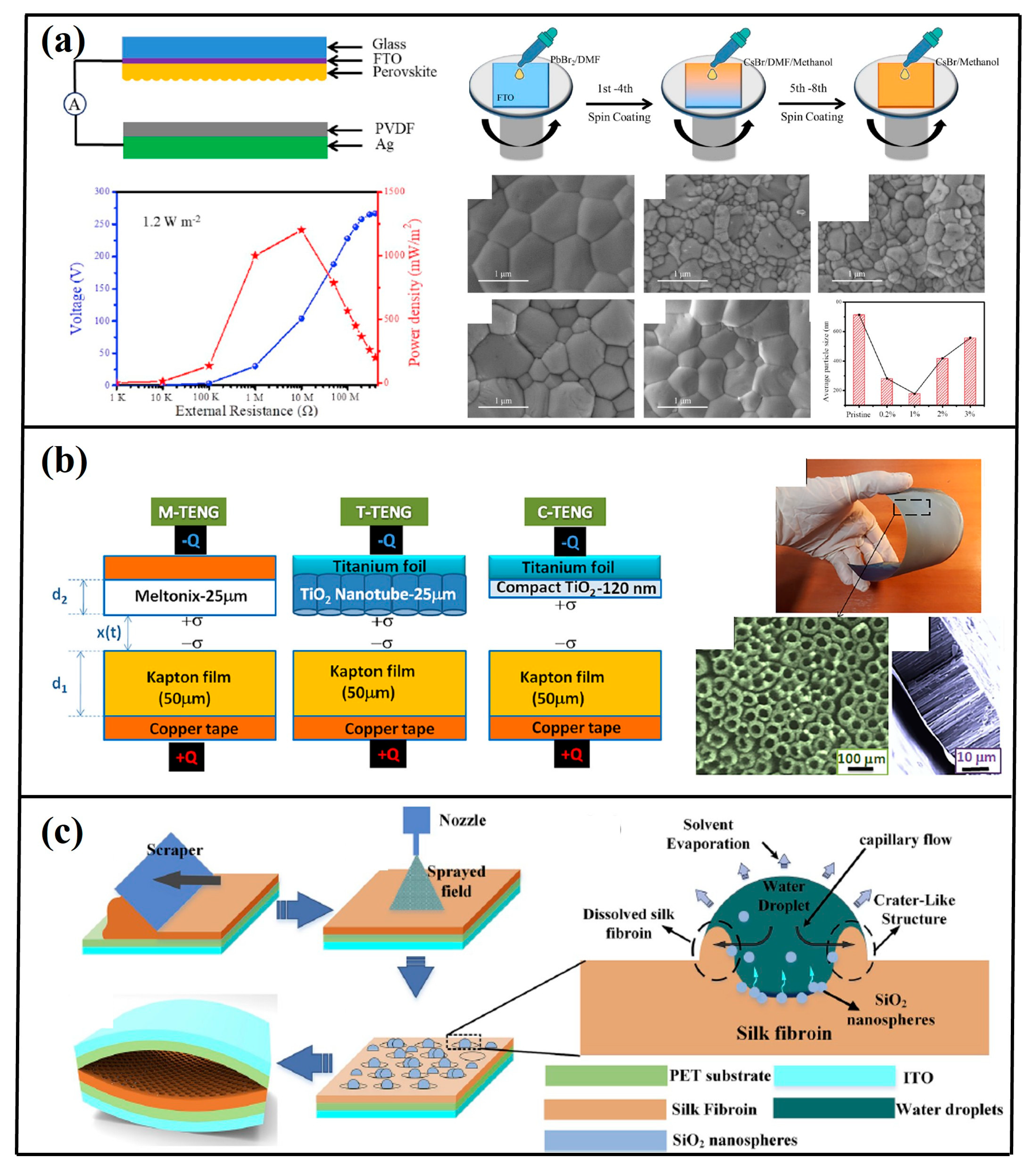 3] have attracted significant research interest owing to their exceptional capability in transforming kinetic energy sources into electric power. These systems function through synergistic mechanisms combining surface charge transfer phenomena with induced electrostatic potential differences. Characterized by structural simplicity, economic feasibility, and superior energy transformation performance [
