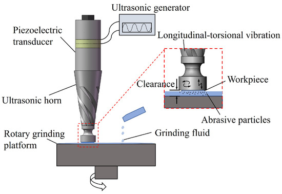 Schematic diagram of ultrasonic longitudinal–torsional grinding.