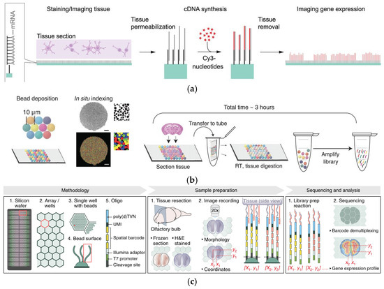 - Williams, C.G.; Lee, H.J.; Asatsuma, T.; Vento-Tormo, R.; Haque, A. An Introduction to Spatial Transcriptomics for Biomedical Research. Genome Med. 2022, 14, 68. [Google Scholar] [CrossRef] [PubMed]