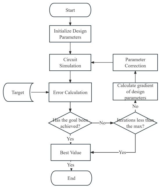 The improved algorithm is applied to the basic process of RF device parameter extraction, as shown in Figure 1. The specific steps include parameter initialization, parameter gradient calculation, parameter correction, and error calculation, among other key stages. Through step-by-step optimization strategies, this process significantly enhances the optimization efficiency and accuracy of the algorithm in complex models.
