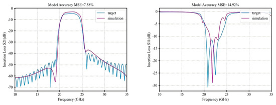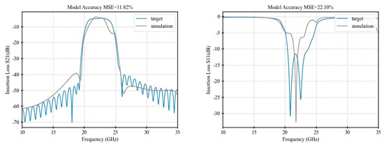 The MSE is used to measure the difference between the simulated values and the target values. A smaller MSE indicates that the predicted results of the model deviate less from the target values, leading to better optimization performance [13]. The coefficients and are the weights for insertion loss and the reflection coefficient, respectively, and they satisfy the following condition:. The final optimization objective is to minimize to achieve the combined optimization of the insertion loss and reflection coefficient.