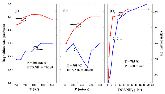 3.1. Modulation of LPCVD SiNx Growth Conditions