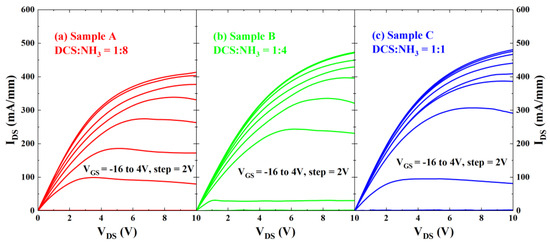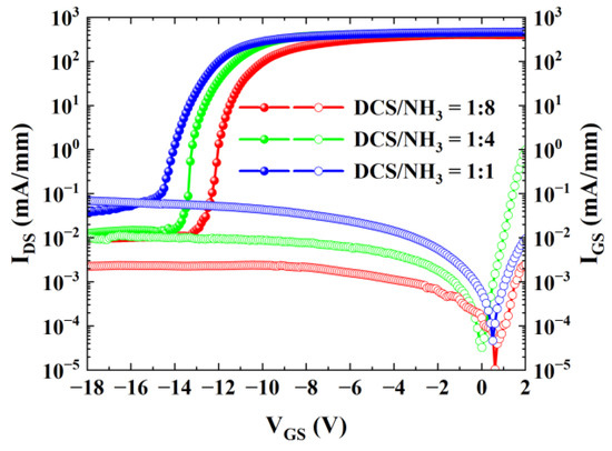 - Siddique, A.; Ahmed, R.; Anderson, J.; Holtz, M.; Piner, E.L. Improved Electrical Properties of AlGaN/GaN High-Electron-Mobility Transistors by In Situ Tailoring the SiNx Passivation Layer. Acs Appl. Mater. Interfaces 2021, 13, 18264–18273. [Google Scholar] [CrossRef]