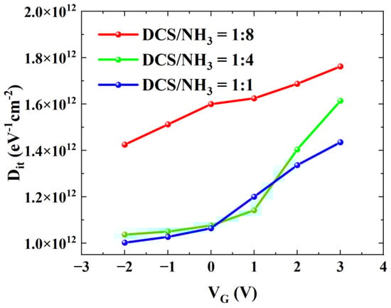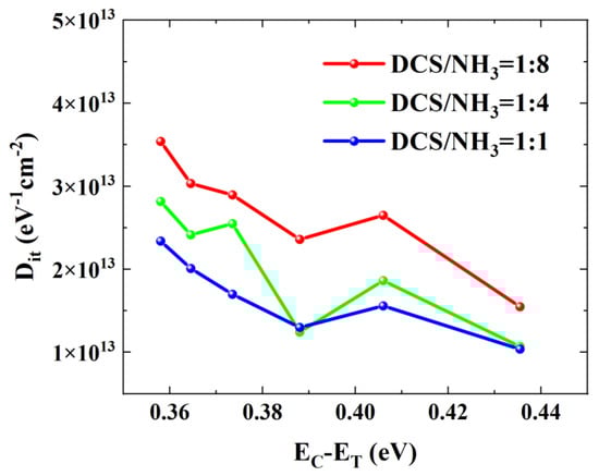 - Lu, X.; Yu, K.; Jiang, H.; Zhang, A.; Lau, K.M. Study of Interface Traps in AlGaN/GaN MISHEMTs Using LPCVD SiNx as Gate Dielectric. IEEE Trans. Electron Devices 2017, 64, 824–831. [Google Scholar] [CrossRef]