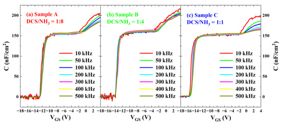 - Liu, Z.; Huang, S.; Bao, Q.; Wang, X.; Wei, K.; Jiang, H.; Cui, H.; Li, J.; Zhao, C.; Liu, X.; et al. Investigation of the interface between LPCVD-SiNx gate dielectric and III-nitride for AlGaN/GaN MIS-HEMTs. J. Vac. Sci. Technol. B 2016, 34, 041202. [Google Scholar] [CrossRef]