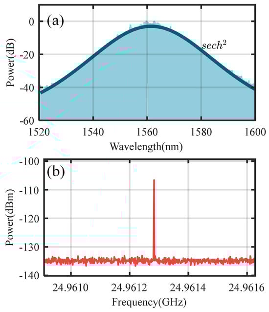 In the proposed coherent dual-microcomb system with adjustable repetition rates, single sideband (SSB) modulation is used to adjust the pump laser frequency of the local comb, which drives the microresonator to generate SMCs. Achieving a high side-mode suppression ratio (SMSR), as shown in Figure 3b, minimizes the influence of the carrier and other sidebands within the microcavity, thereby enabling the efficient generation and stable operation of the microcomb. Figure 3c presents the optical spectra of the microcomb, generated and adjusted through thermal control, under two different single-sideband modulation frequencies.