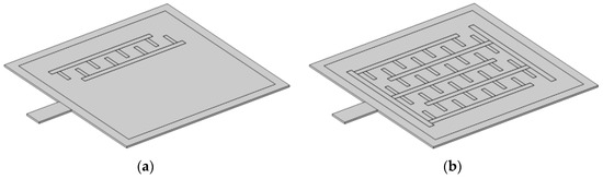 To detect the output charge of the piezoelectric thin film in the d₃₃ operating mode, IDTs are commonly used as sensing electrodes. Traditional IDTs typically consist of a pair of vertically arranged electrodes. However, to maximize the electrode coverage on the diaphragm surface and enhance displacement-detection capabilities, this study proposes a branched comb-shaped interdigitated electrode, inspired by branched comb capacitor structures [21]. This novel design effectively increases the number of electrode pairs, thereby improving the output signal level. The schematic diagrams of conventional IDTs and branched comb-shaped IDTs are shown in Figure 11.