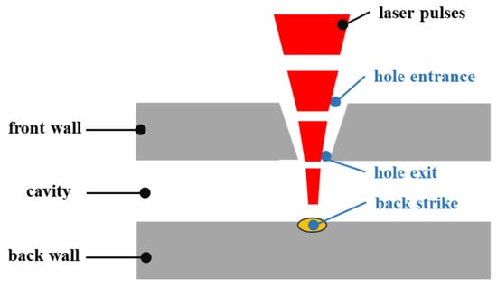 However, when processing workpieces with complex internal structures, such as aeroengine turbine blades, laser machining faces significant challenges. These blades feature hollow interiors, confined spaces, and intricate curved surfaces. Improper operation may lead to excessive machining of the inner cavity walls after the laser beam penetrates the material’s lower surface, resulting in so-called back wall damage. Back wall damage not only reduces the material’s fatigue life but also adversely affects its hardness and tensile strength, thereby severely compromising the overall performance and service life of the turbine blades. Consequently, implementing effective protective measures to prevent back wall damage has become crucial for ensuring machining quality. To address the issue of back wall damage and enhance the quality and efficiency of laser machining, current auxiliary methods for back wall damage prevention in laser drilling primarily fall into two categories: passive protection by adding protective materials and active protection using various sensors to monitor the laser drilling process [3,7,8,9].