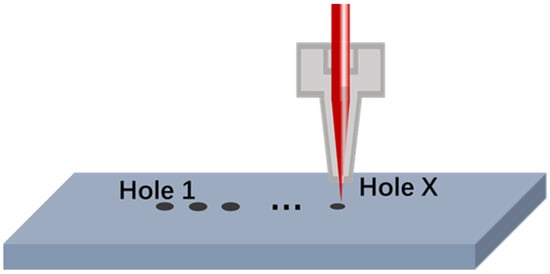 In practical laser drilling processes, it is often necessary to drill multiple holes. When using this laser drilling acoustic monitoring platform, previously drilled holes can influence the signals detected during subsequent drilling processes. Specifically, existing holes alter the propagation path of acoustic waves within the material. When laser drilling subsequent holes, the generated acoustic waves may reflect or scatter at the existing holes, leading to waveform distortion, amplitude attenuation, or time delays in the signals received by the sensor. To investigate the variation patterns of signal intensity during multi-hole drilling, a multi-hole drilling experiment was designed as illustrated in the Figure 12.