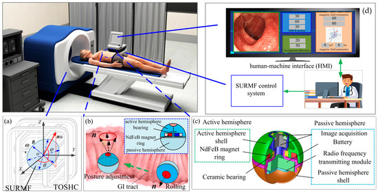 - Li, X.; Zeng, D.T.; Xu, H.; Zhang, Q.; Liao, B. Magnetic actuation for wireless capsule endoscopy in a large workspace using a mobile-coil system. Micromachines 2024, 15, 1373. [Google Scholar] [CrossRef]