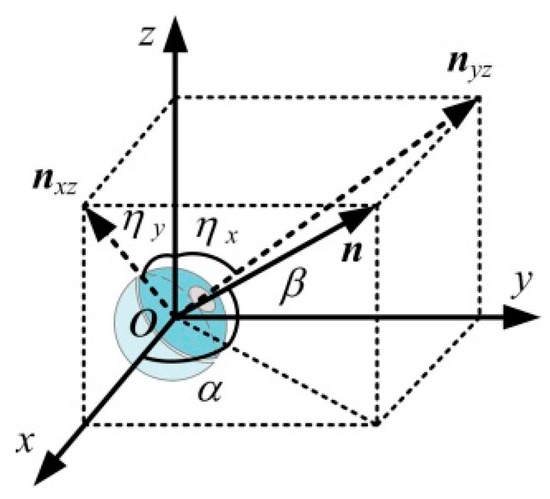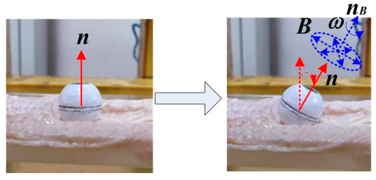 The SURMF generating device (TOSHC, as shown in Figure 1a) produces a SURMF when a three-phase alternating current is applied to the coils. The specific current formula is shown in [10]. The SURMF with magnetic vector B rotates counterclockwise with angular velocity ω around the axis normal vector nB= (θ, ϕ), where θ and ϕ are the yaw and the pitch angles of nB, respectively.