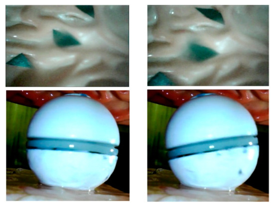 Due to the volume and energy limitations, the DHCR does not incorporate gyroscopic sensors. Instead, posture information can be detected through the vision system. During the posture adjustment process of DHCR based on tracking effects, GI images can be obtained, as shown in Figure 7.