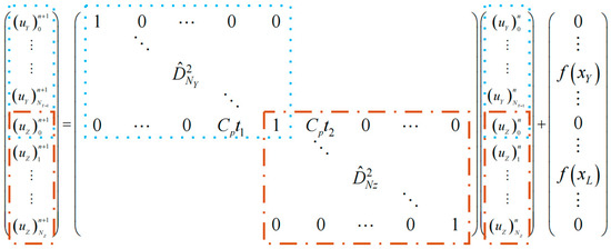 Equation (1) is temporally and spatially discretized using the Chebyshev spectral method [19] and the forward Euler difference scheme [20]. Figure 5 shows the resulting matrix equation for solving the transient temperature distribution of the V-shaped electrothermal actuator.