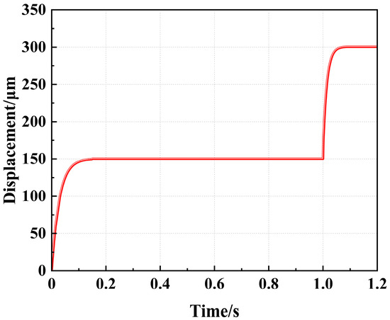 Figure 12 presents the flameproof slider’s dynamic response curve within one cycle. The slider can cumulatively output two steps within one cycle, its total displacement is about 300.14 μm, and its overall system response time is 1.2 s.