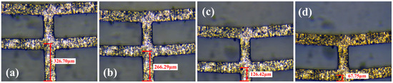 Figure 16 shows the impact of the V-beam width on the displacement. Under the same voltage condition, the displacement shows a nonlinear increasing trend with the increase in the width, while under the same temperature condition, the displacement decreases with the increase in the width. The increase in width promotes the rigidity of the structure, which inhibits the displacement under the same temperature load. Nevertheless, within the range of width, the variation in its value has relatively less effect on the displacement.