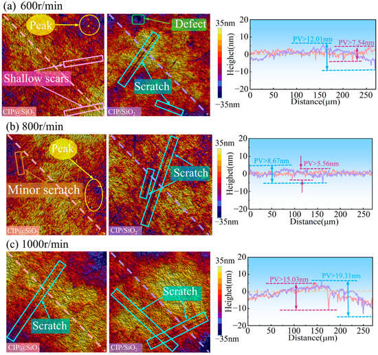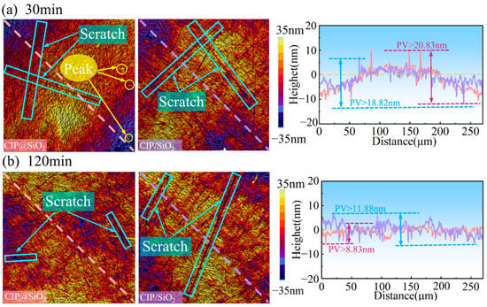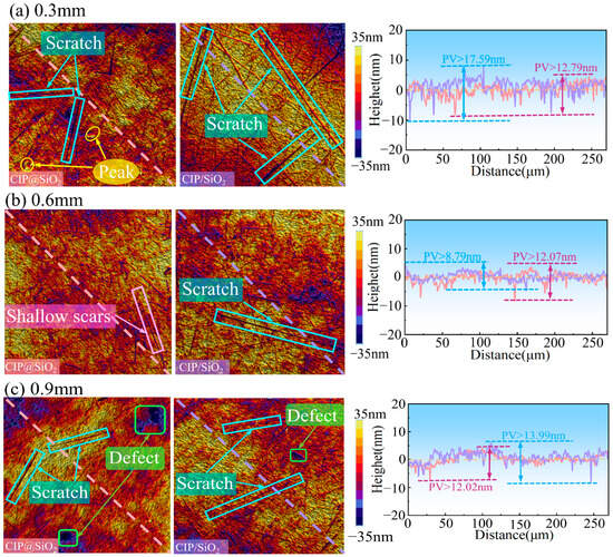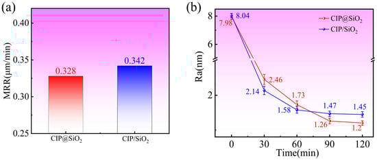 | Abrasive type | 35 vol% CIP@SiO2 composite abrasive, 35 vol% CIP/SiO2 mixed abrasive (CIP 24 vol%, SiO2 11 vol%) |