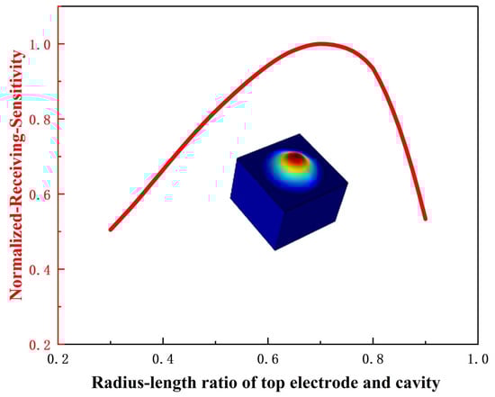 The influence of the radius–length ratio of the top electrode and cavity on the sensitivity of PMUT.