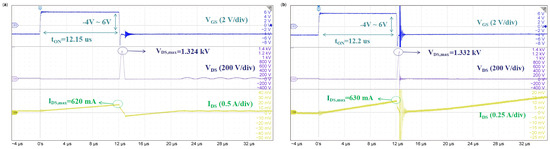 - Kozak, J.P.; Zhang, R.Z.; Song, Q.H.; Liu, J.C.; Saito, W.; Zhang, Y.H. True breakdown voltage and overvoltage margin of GaN power HEMTs in hard switching. IEEE Electron. Device Lett. 2021, 42, 505–508. [Google Scholar] [CrossRef]