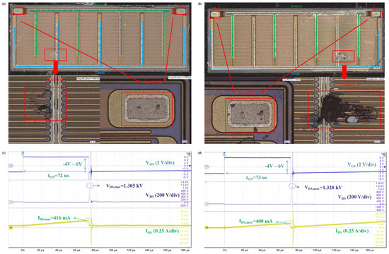 - Ye, J.J.; Xuan, L.; Wu, Y.Y.; Deng, X.C.; Li, Z.Q.; Zhang, B. Failure Analysis of 200V p-GaN HEMT under Unclamped Inductive Switching Conditions. In Proceedings of the 2021 IEEE Workshop on Wide Bandgap Power Devices and Applications in Asia (WiPDA Asia), Wuhan, China, 25–27 August 2021; pp. 350–353. [Google Scholar]