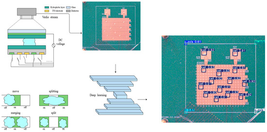 8] was adopted for the visual detection module of the DMF system. By integrating the GAM_Attention and EMA attention mechanisms, the model’s droplet feature recognition capabilities were significantly enhanced, enabling the high-precision detection of droplet positions and real-time feedback. This improvement further enhanced the intelligence and operational performance of the system.
