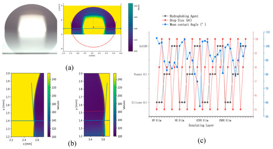 Figure 8, the results of the treatments are presented. The thicknesses of the ETFE film, PP film, PE film, and PDFE film are 15 µm, 10 µm, 20 µm, and 30 µm, respectively, with 20 µL of silicone oil, peanut oil, and Soft99 applied per coating. The droplet sizes are 5 µL, 8 µL, and 10 µL. From this Figure, it can be observed that when the droplet size is 5 µL, the insulating layer material is 2 µm, and the hydrophobic layer is silicone oil, the contact angle of the droplet at 0 V on the digital microfluidic chip surface is the largest. Therefore, the improved YOLOv8 model will be used to recognize droplets under these conditions.