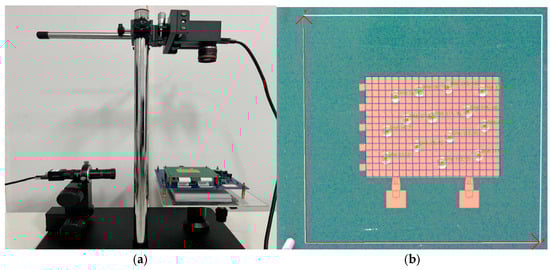In the fabrication process of digital microfluidic chips, a circuit schematic design method based on a parallel pin layout is employed, and standardized PCB fabrication processes are used to achieve the mass production of the chips. The chip substrate is made of an FR-4 epoxy fiberglass composite material, whose excellent dielectric properties (dielectric constant of 4.4–4.8 @ 1 MHz), high glass transition temperature (Tg ≥ 130 °C), and mechanical stability (bending strength ≥ 400 MPa) effectively meet the comprehensive requirements of microfluidic systems for substrate materials. The electrode structure is made from a copper conductive layer (thickness 35 ± 5 μm) fabricated using photolithography, with a gold/nickel/copper composite layer formed through gold plating treatment. This structure maintains high electrical conductivity (5.96 × 107 S/m) while significantly improving the electrode’s oxidation resistance (no significant corrosion after 240 h of 85 °C/85%RH environmental testing). This design method supports the dynamic optimization of electrode dimensions (accuracy ± 10 μm) by adjusting photomask parameters. Combined with the standard processes of the Jialichuang PCB manufacturing platform (line width/line spacing ≥ 4 mil, minimum hole diameter ≥ 0.3 mm), it enables rapid iteration to obtain complete functional chips that meet different driving voltage requirements (0–300 Vrms).