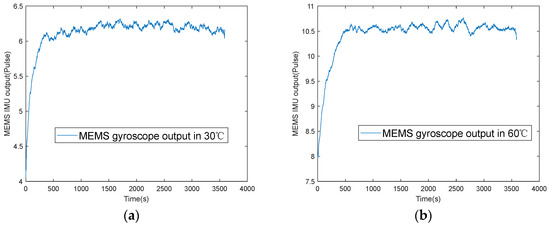 Figure 1. MEMS gyroscope cold start output T different temperature points: (a) 30 °C; (b) 60 °C.