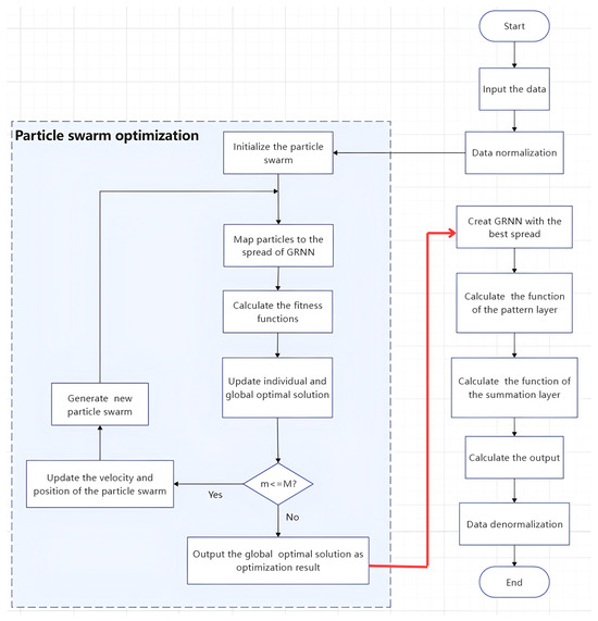 After completing this algorithm, the particle’s position with the optimal fitness (Gbest) is output, completing the process of optimization. Gbest, in this paper, is the spread parameter that makes the GRNN model fit best.