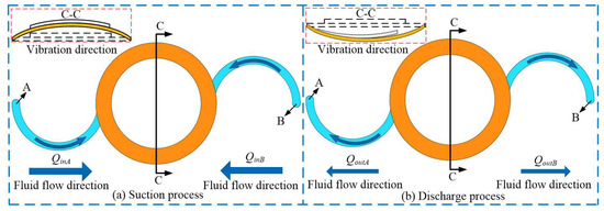 - Yan, Q.F.; Yin, Y.K.; Wang, L.; Wang, H.M.; Sun, W.T. Theoretical and experimental research on valve-less piezoelectric pump with arc-shaped tubes. Rev. Sci. Instrum. 2022, 93, 105004. [Google Scholar] [CrossRef]