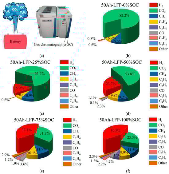 - Jia, Z.; Qin, P.; Li, Z.; Wei, Z.; Jin, K.; Jiang, L.; Wang, Q. Analysis of gas release during the process of thermal runaway of lithium-ion batteries with three different cathode materials. J. Energy Storage 2022, 50, 104302. [Google Scholar] [CrossRef]
