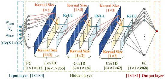 In machine learning optimization processes, it is common to augment the original features with additional, comprehensive ones to provide the model with maximum information. Thus, we conducted data analysis on the initial dataset, experimenting with various random combinations of original features. It was observed that incorporating nFLR (X3)/(Ndrift (X1) × NA (X2)) as the fourth feature (X4) led to a 2.3% decrease in the average test set error. Achieving such an increase in precision atop an already high level was challenging. This improvement can be attributed to nFLR positively correlating with Vbr, while the other two parameters exhibited a negative correlation with Vbr. The designed composite feature X4 significantly improves the model’s capabilities by integrating the physical relationship between the doping concentration distribution and the terminal structural parameters into the neural network model. Before feeding into the CNN, these features undergo a fully connected layer for data expansion, with the size optimized and adjusted according to the network’s requirements.