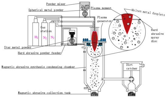 Preparation principle of magnetic abrasives for plasma melt spraying.