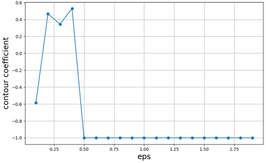 In the formula, S represents the silhouette coefficient of the sample, and the value of s indicates the quality of the DBSCAN clustering results. The range of s is from −1 to 1, with clustering results falling between these two values. A value of 1 signifies a highly ideal clustering result, where all data points are entirely distinguishable, while −1 represents poor clustering effectiveness, with no data points being distinguishable. b represents the mean distance between the sample and samples in other clusters, while a denotes the mean distance between the sample and samples within the same cluster. The average of the silhouette coefficients for all samples is calculated as the evaluation metric for the DBSCAN results.