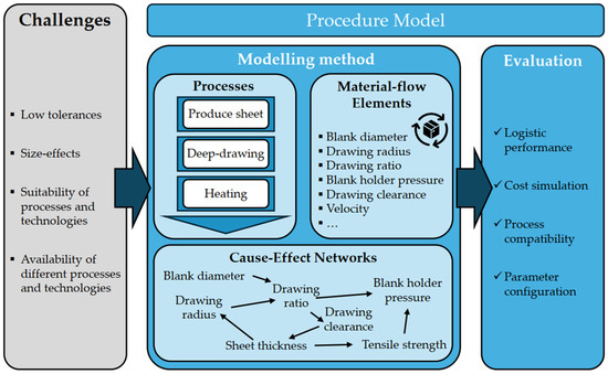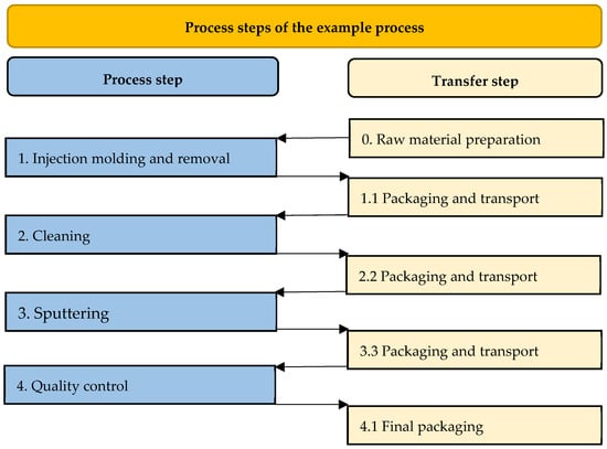 The “Micro-Process Planning and Analysis” (µ-ProPlAn) method is a process planning method that is used to plan and design process chains in MST. Its primary focus is modelling and analyzing the interdependencies between the various production technologies and the logistical interfaces between the individual production steps [33,58,126,129,130,131]. The method is characterized by a holistic view of the process and material flow planning, the configuration and design of the processes, and the evaluation of the modelled process chains using process simulations and statistical methods [130]. Following the simultaneous engineering approach, the methodology enables a detailed analysis of process efficiency to be carried out as early as the product planning phase, weak points to be identified, and these to be optimized using suitable process parameters [33,58,126,130]. The method can also be used to evaluate existing process chains [58].