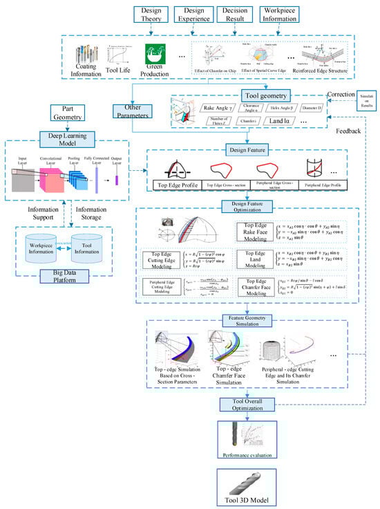 With the information support of the big data platform, the design of customized tools based on structural characteristics should not only consider the conventional tool design, but also consider the influence of the design theory and design experience of the tool, coating information, tool life, green resource utilization and other factors, but also for the low-rigidity parts are mostly difficult to process materials such as titanium alloy and easy to deform. The effect of chamfering and space curve edge on chips and the strengthening of edge structure [37] are considered to reduce tool wear and damage and improve tool life.