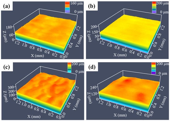 Surface morphologies of SLM-316L stainless steel after laser processing with different laser parameters: (a) No. 1, (b) No. 8, (c) No. 10, and (d) No. 13.