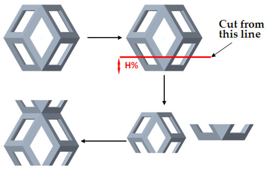 Two views of different cutting height of two unit cells.