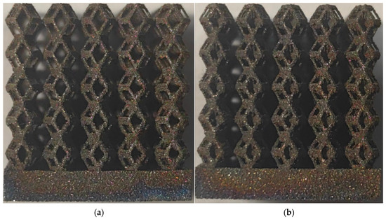 The forming effect of two models without height cutting. (a) The effect of forming rhombic dodecahedron gradient structure with SLM; (b) The effect of forming derived dodecahedron gradient structure with SLM.