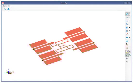 To validate the accuracy of the proposed I-clamp RF MEMS switch, post-layout parasitic extraction-based modeling was conducted to observe the performance closer to the fabricated prototype. The layout of the I-clamp switch was simulated in the RFPro platform of Advanced Design System (ADS), as shown in Figure 8.